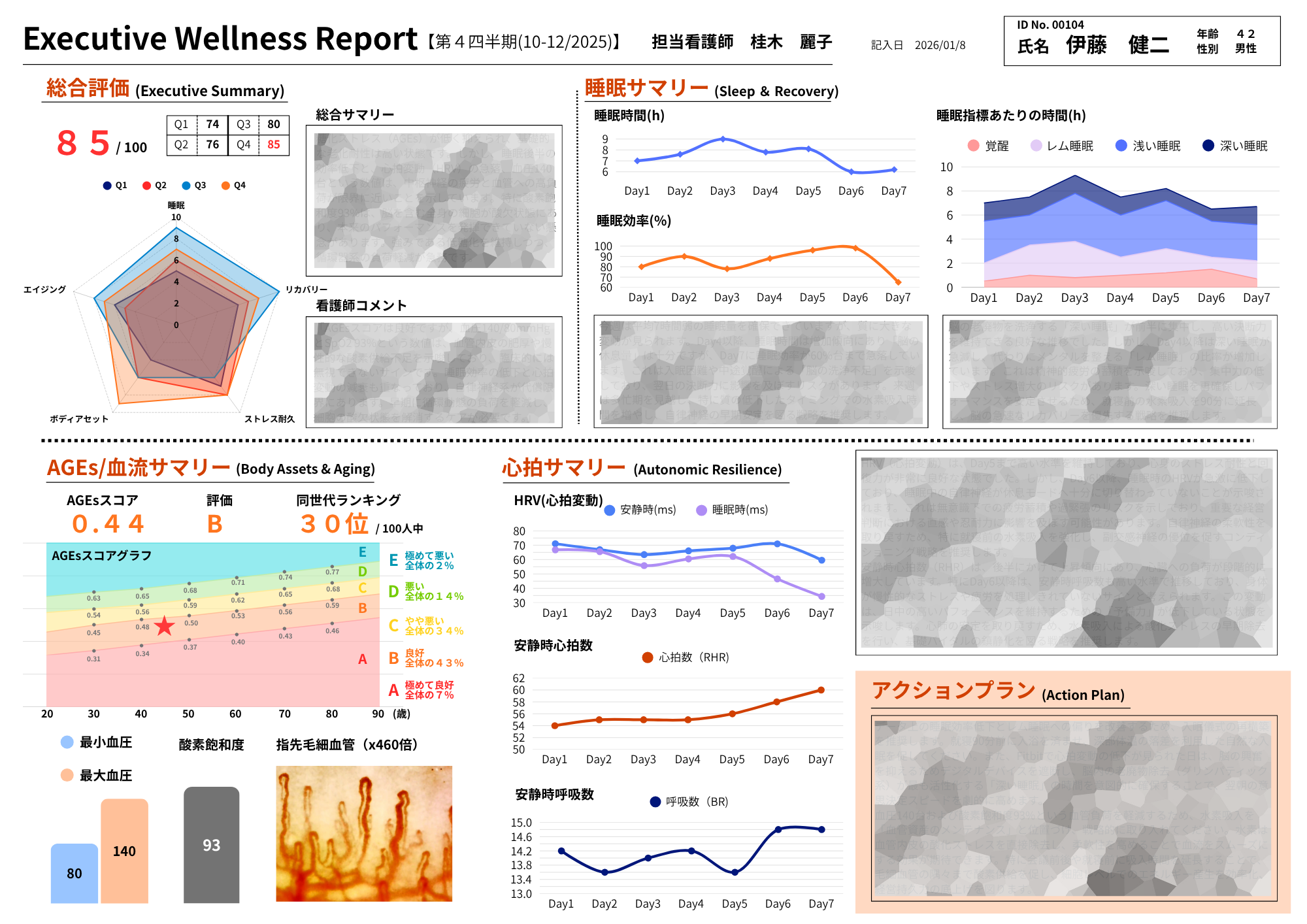 とくに経営者はストレスで血流が悪くなりやすいため、変化の傾向を追うことで コンディション管理の精度が向上 します
